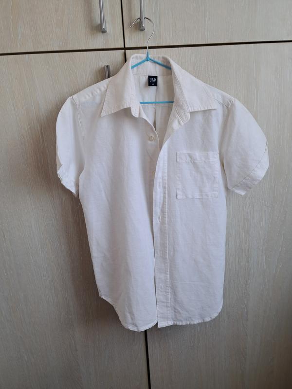 Летняя рубашка для мальчика 10роков.Длина 58см Ширина 43 Бирки о составе ткани нет, но похоже на лен.