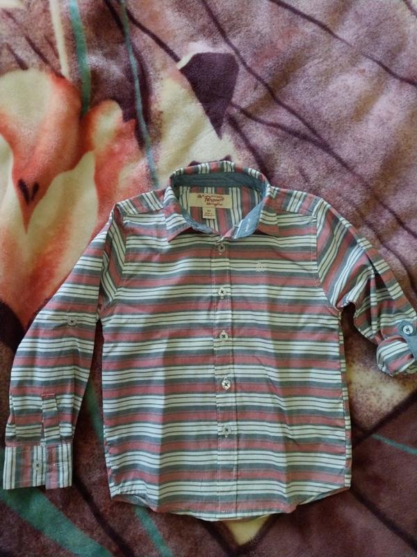 Рубашка для мальчика на пуговицах полностью, 4 года, оригинал Penguin, Bangladesh. Рукав подворачивается в летний вариант на полоску и пуговицу. Длина рукава 36см, длина изделия 42, ширина изделия 32см.
