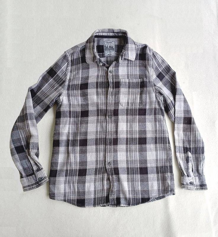 Пропоную теплу сіру сорочку в клітинку, від Rebel. Матеріал фланель, 100% бавовна. Уживана акуратно, стан дуже добрий, дефектів немає, дивіться фото. Розмір вказаний на 12-13 років. Довжина 61 см, ширина плечей 35 см, довжина рукава від плеча 56 см, ширина грудей під пахвами 45 см. Дивіться інші мої пропозиції, заощаджуйте на доставці!