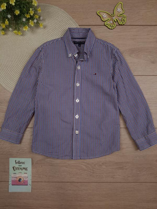 Детская рубашка 4-5 лет tommy hilfiger в клеточку с длинным рукавом для мальчика