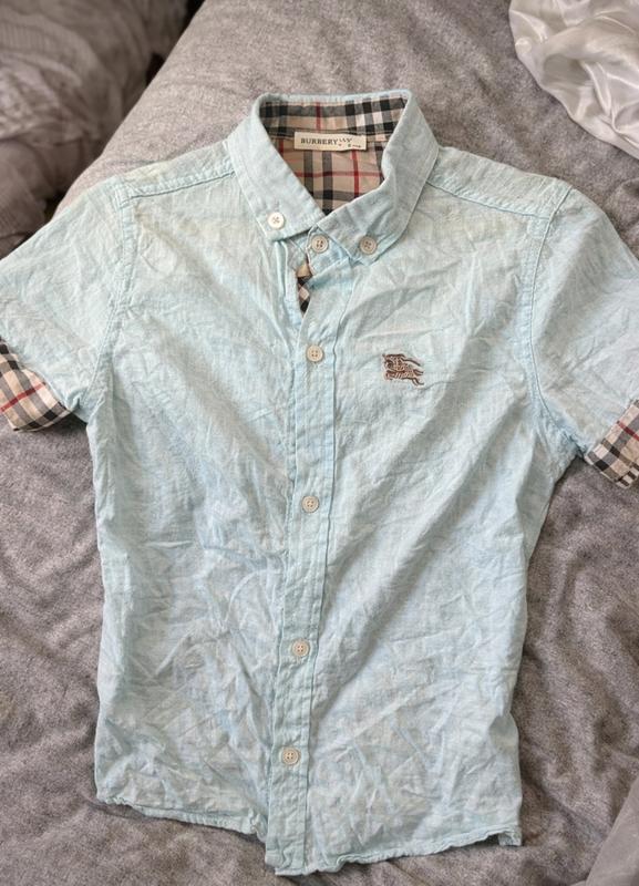 Представлена сорочка Burberry - це дитяча сорочка з короткими рукавами. Присутній вишитий логотип Burberry на грудях. Розмір :6 років Ціна 350