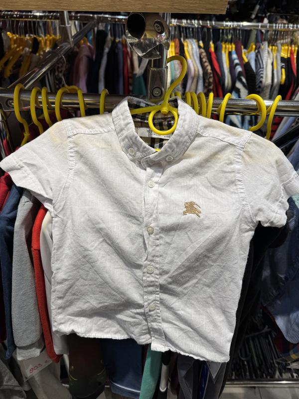 Представлена сорочка Burberry - це дитяча сорочка з короткими рукавами. Внутрішня частина коміра та манжети рукавів мають фірмовий картатий принт Burberry Розмір 4 роки Ціна 350