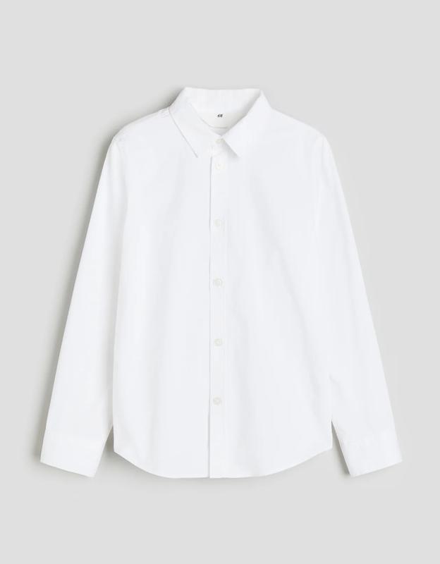 белая рубашка H&M для мальчика 9 лет на рост 140 см, ПОГ 42 см, длина 54 см, рукав от горловины 61 см