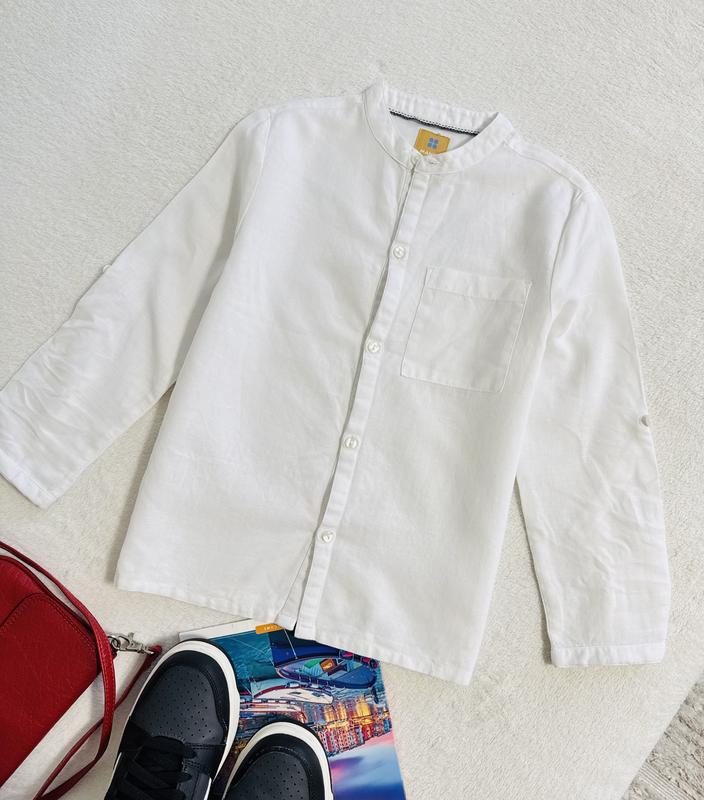 Біла базова сорочка від Manor Розмір 116 см 70% котон, 30% льон По грудей 37 см Рукав 49-40 см Довжина 47 см
