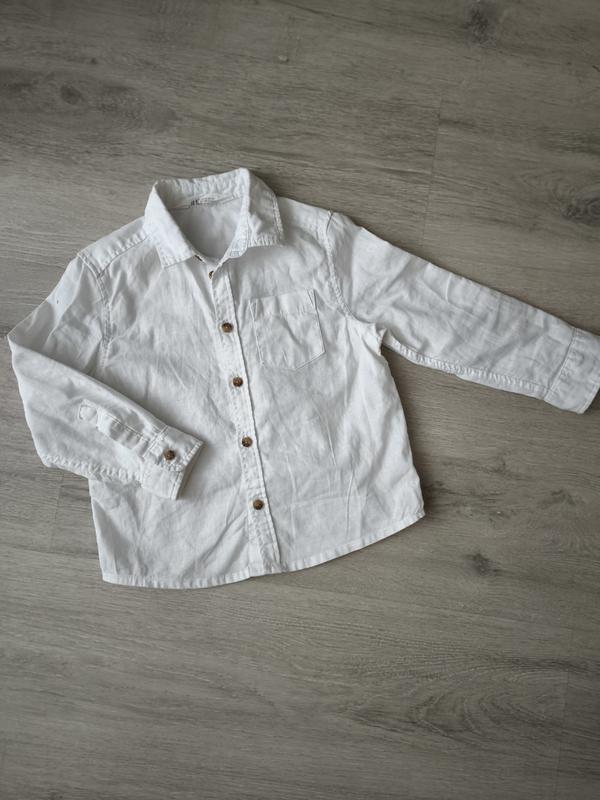 Рубашка белая в идеальном состоянии. Размер 3-4 года. 55% льон 45 бавовна