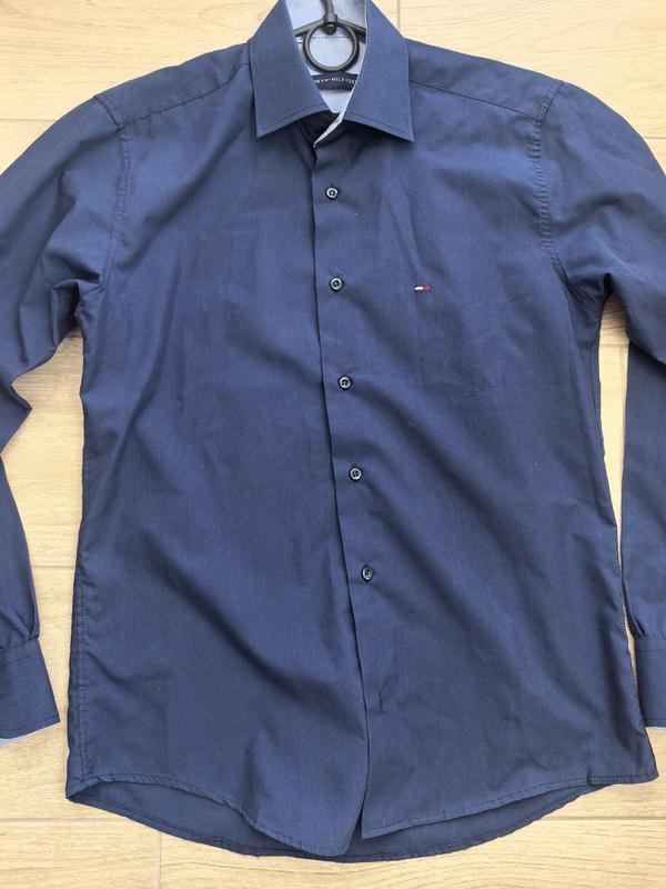 Стан идеален, без следов на воротнике и манжетах. Без каких-либо дефектов, лишь отсутствует одна последняя пуговица снизу. Можно переместить из рукава. Цвет темно-синий. Материал натуральный - 100% хлопок