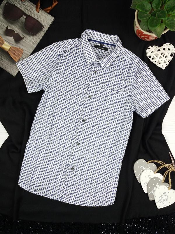 Рубашка Marks & Spenser 8 - 9 лет, 128 - 134 см. Бангладеш. Ткань 100% котон, впереди 1 кармашек, дефектов нет, идеальное сост.! Замеры: плечи - 28.5 см, шир. под мышками - 37.5 см, длина - 55.5 см, длина рукава - 15 см., от ворота до плеча - 9 см.