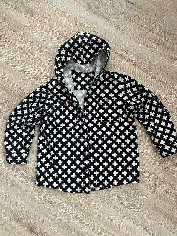 байкова сорочка для хлопця на гудзиках з капюшоном. Заміри: довжина 46.см пог 37см. плечи 31 см. рукав від плеча 40 см