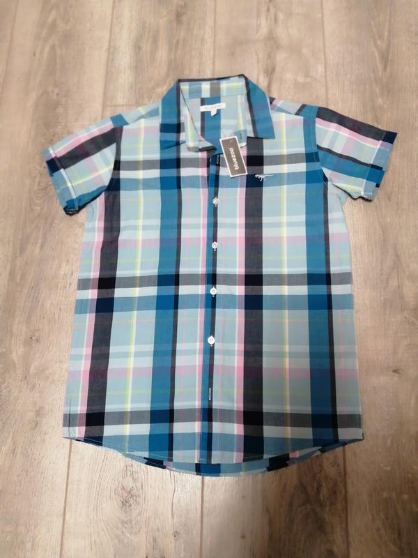 Нова теніска блакитна в клітинку, для хлопчика на 11 р. З 100 % котону. Маде ін Бангладеш. Якість відмінна, приємна до тіла. В ідеальному стані, браку чи недоліків не має.