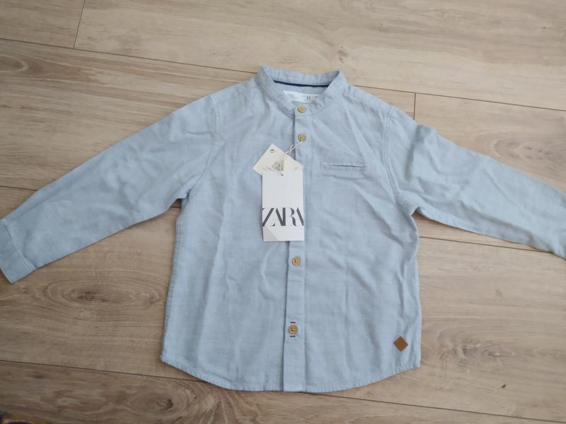 Стильна сорочка фірми Зара на 3-4 роки (104 см). Заміри . Довжина -42 см, обхват -34,рукав від плеча -35,5. Бавовна+ льон, плотна,не тонка