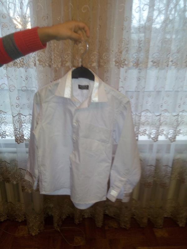 Рубашка для мальчика . На воротнике и манжетах рукава вставки белого атласа. Состав: 65%-хлопок, 35%-полиэстер. Размер-31. Длина 52 см, ширина подмышками 43 см, плечи 36 см, рукав от плеча 45 см, от подмышки 39.5 см.