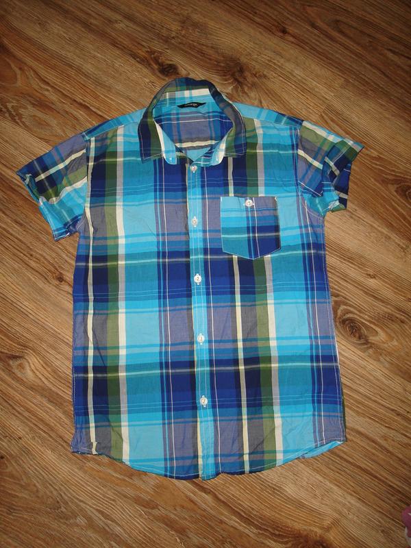 Котоновая рубашка на 11-12 лет 100% хлопок длина 61 ширина 41 плечи 38 в идеале