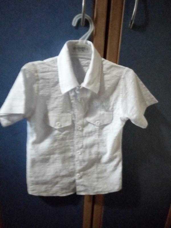 Белая рубашка жатка. Над карманом есть вышивка белыми нитками. Длина - 43 см, пог - 33 см. Дополнительные замеры по запросу.