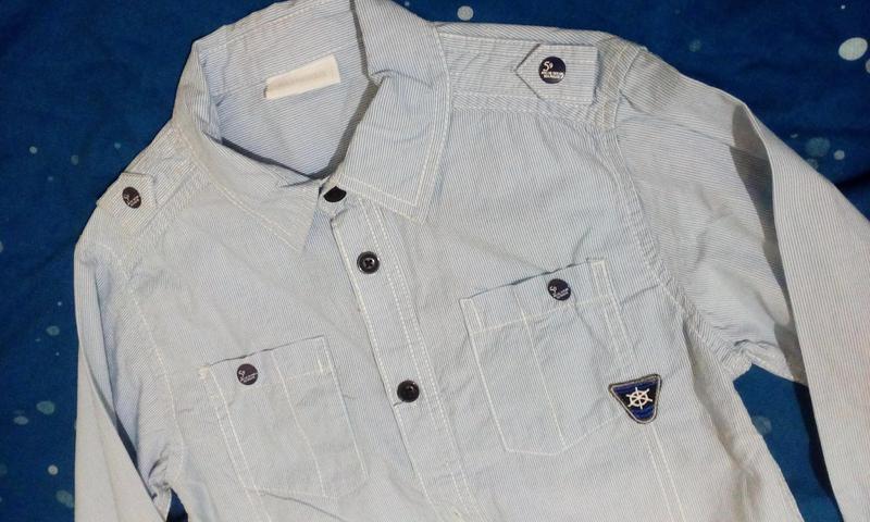 Новая рубаха БЛУКИДЗ рост 128 в синюю мелкую полосочку