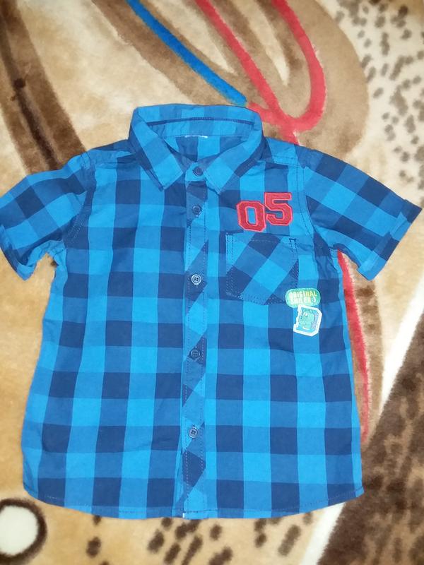 Рубашка детская F&F 100% коттон, на рост 92см, объем талии 62см, длина от плеча до низа рубашки 37см, расстояние от плеча до плеча 24см.
