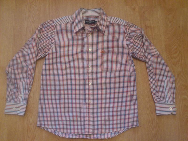 Рубашка McGREGOR в отличном состоянии, на рост 152 см, есть возможность сделать короткий рукав(см. фото). Длина рукава 53 см, длина по спине 63 см.