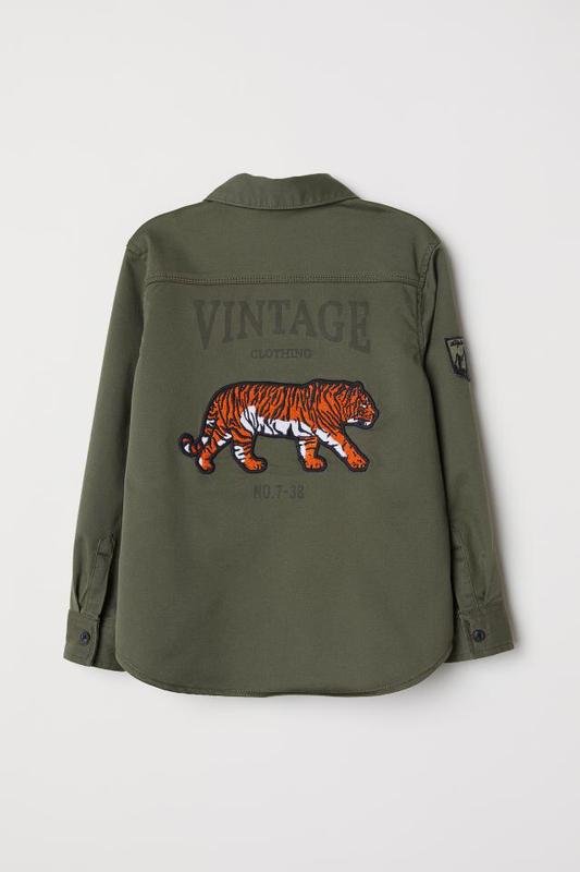 Сорочка з бавовняної твілу з м'якою поверхнею. Спереду і ззаду принт на грудях, рукавах та спинці аплікації. Відкладний комір, застібка на ґудзики спереду, нагрудні кишені з клапаном на липучці і довгий рукава з манжетою на гудзиках. • СКЛАД Бавовна 98%; Еластан 2% Розмір 104 {3-4 року}