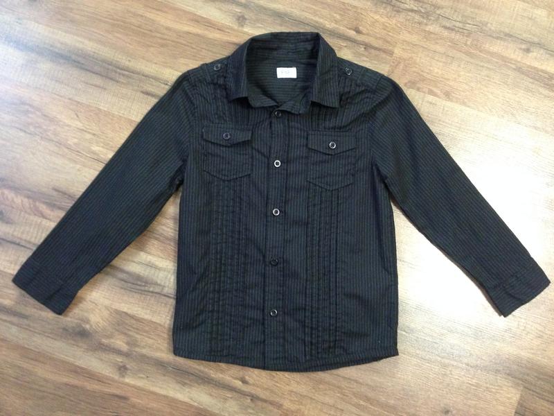 Рубашка для мальчика в состоянии абсолютно новой вещи!Цвет насыщенный,чорный(не получилось на фото передать((()Производитель Индия,состав 100% хлопок,на бирке указано 6-7лет,рост 122,реальные замеры: длина по спине 49см, ширина плеч 31см, плечо 8,5см, длина рукава от плеча 41см, ширина под рукавами 36см, ширина 36см. Дефектов и следов носки нет,абсолютно как новая!