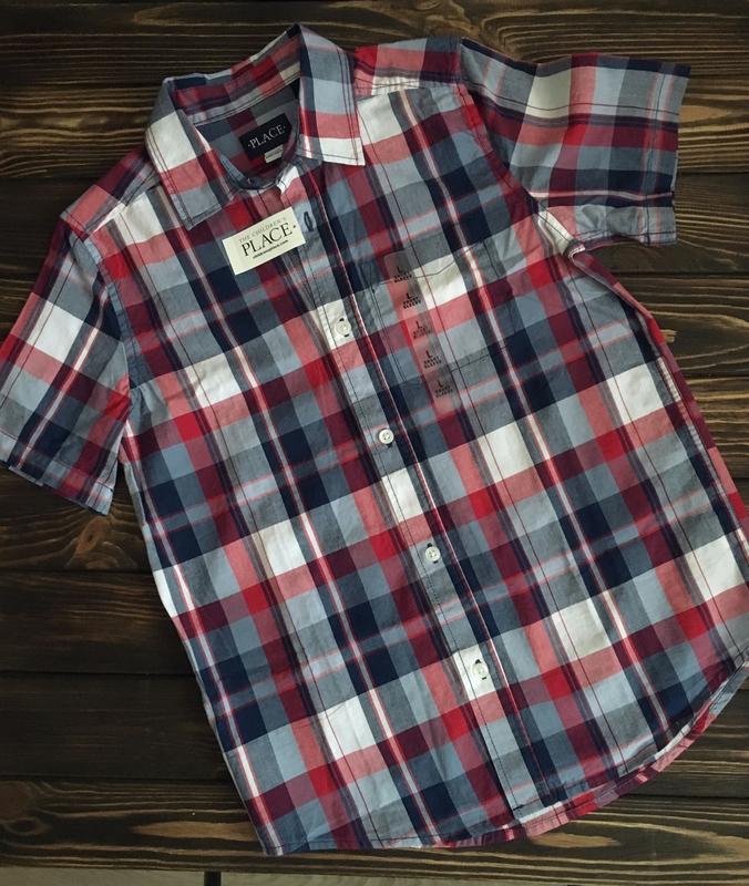 Рубашка с коротким рукавом из 100% хлопка, новая. Замеры: длина 61см, ширина 43см, рукав 49см, ширина плеч 35см