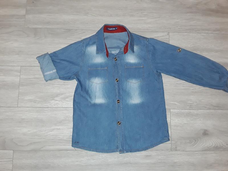 Джинсовая рубашка по бирже на рост 130см. Длина 50см Плечи 30см Рукав 42см Ширина под мышками 38,5см