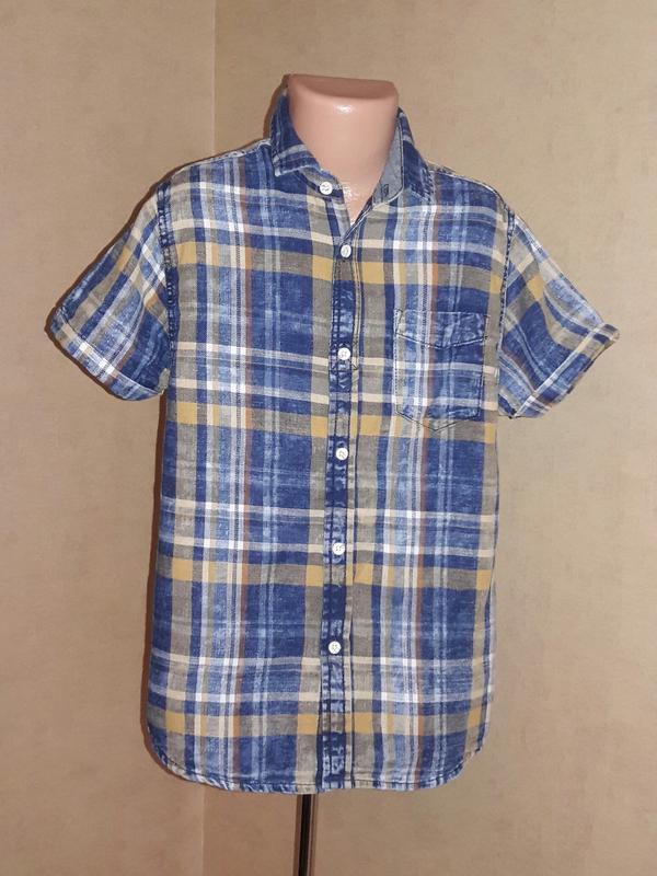 Летняя рубашка next на 8 лет , очень оригинальная ткань под варку , 100% котон