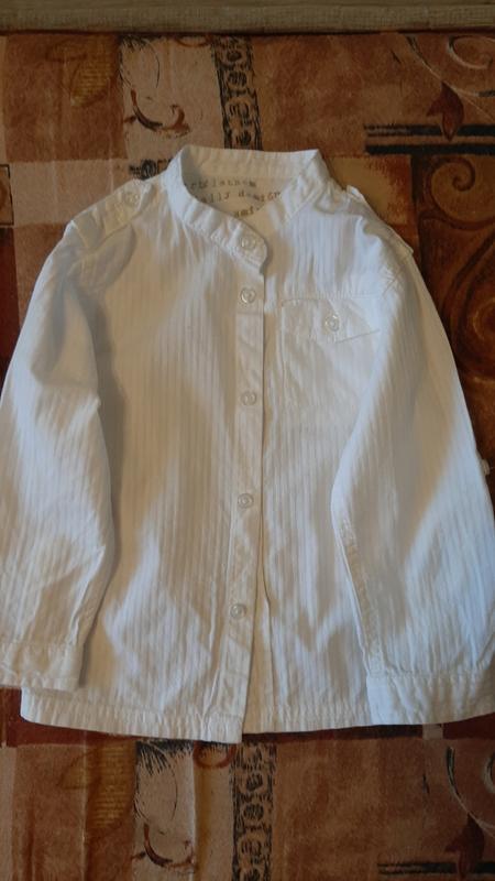 Белая рубашка для мальчика на 86 см в идеальном состоянии. Одета 1 раз на утро в садик.