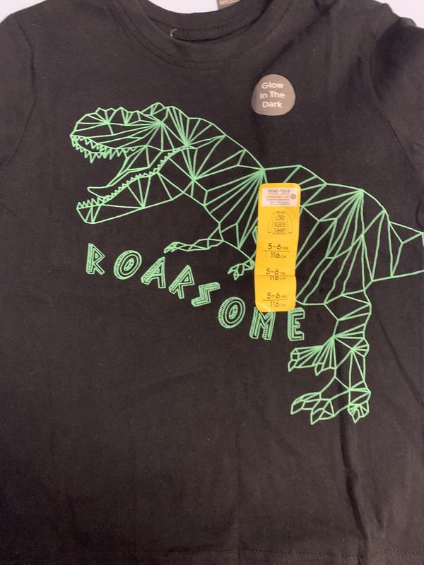 Трикотажный реглан, изображение динозавра в темноте светится. Выглядит простенько, но характерно! Не пропустите приобрести обновку