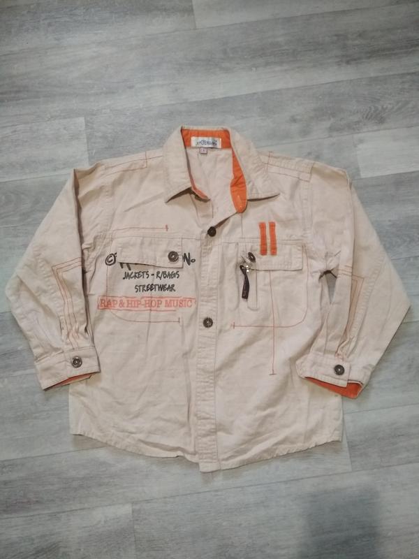 Рубашка для мальчика бежевая. Замеры: плечи 36 см, пог 41 см, рукав 39 см, длина 50 см. На рубашке карманы обманки.