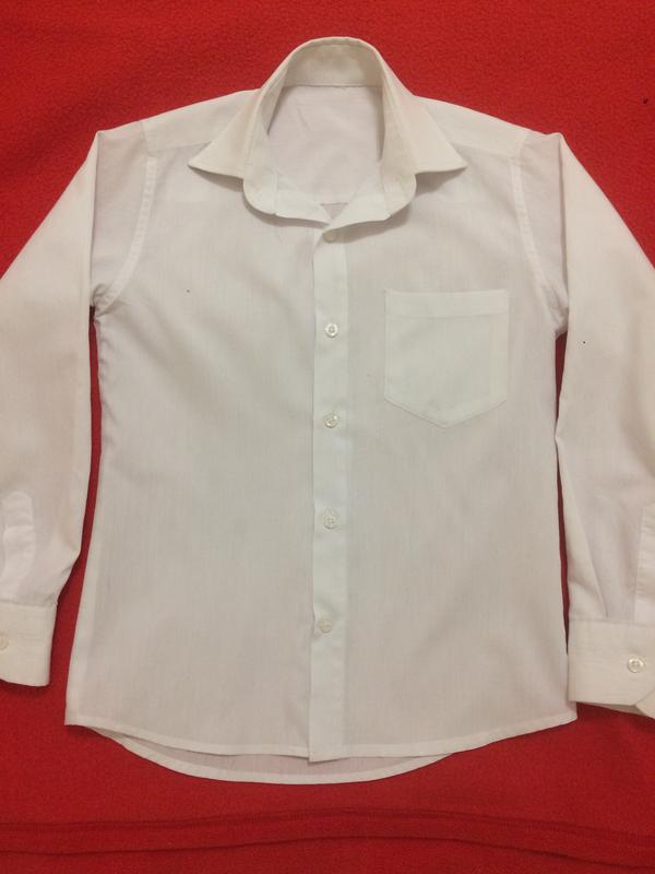 Белая рубашка для школьника. Длина 54 см, ширина 37 см, рукав от плеча до манжета 40 см, манжет 6 см, плечо 12 см