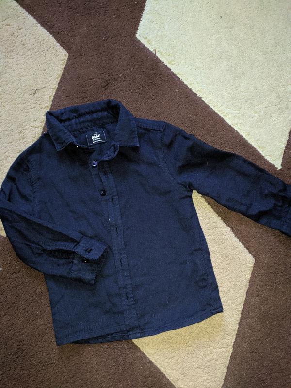 Классная рубашка для малыша. Размер 18-24, но чуть маломерит, либо подойдёт худенькому мальчику. Реальный цвет на фото 1 - тёмно-синий. Состояние отличное