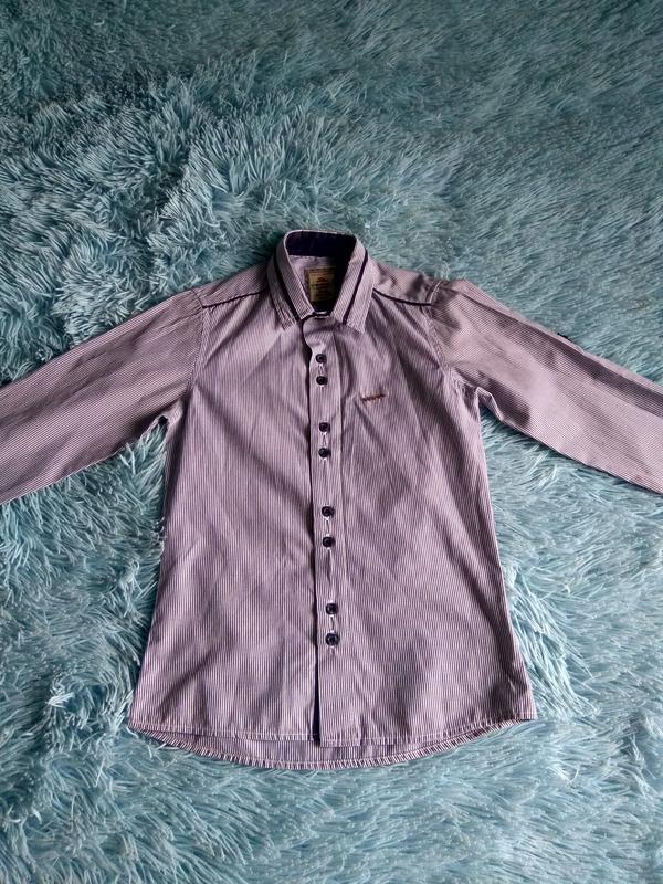 Очень красивая и стильная рубашка на мальчика. Ткань легкая и приятная, немножко тянется. Длина 49см, ширина под рукавами 32см,длина рукава от плеча 42см. Приталенная не широкая, подойдёт и под брюки и под джинсы.