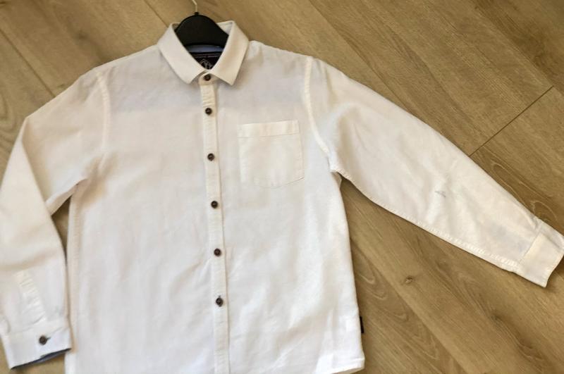 Next рубашка 9 лет. Хлопок. Белая. На рукаве есть пятно, предположительно от ручки, на фото видно. в остальном состояние хорошее. Одевали на праздники. 65 грн
