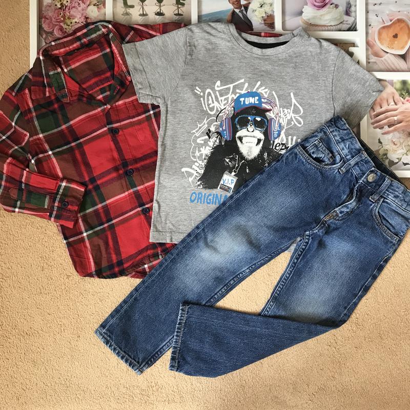🔥Рубашка ❌продана. Футболка P R I M A R K 2/3года - длина 39. Джинсы H & M 2/3года - длина 57, шаговый 38, пояс 24{есть утяжка}. Вещи в оч хорошем состоянии. Цена футболки и джинс 180грн