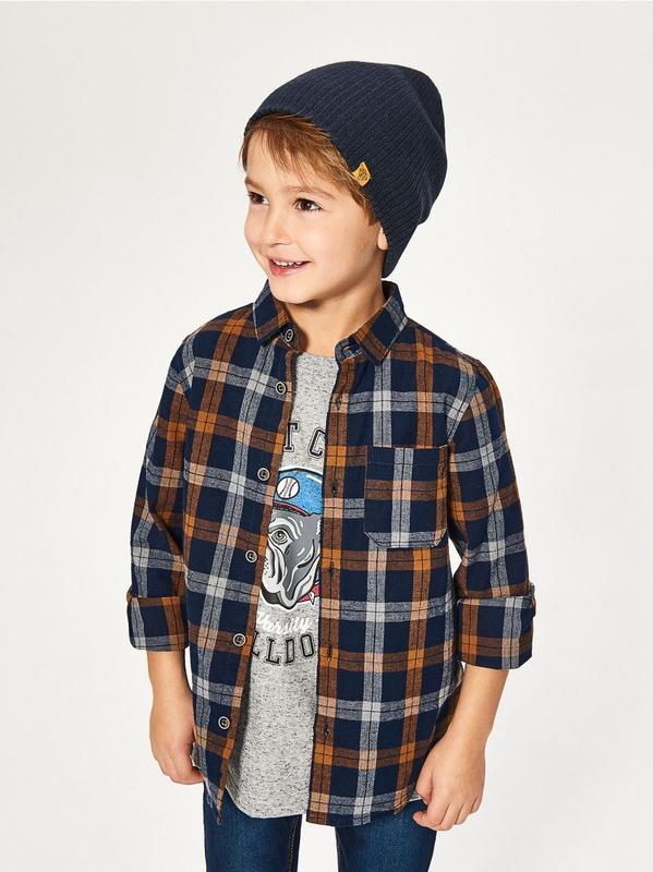 Рубашка Reserved. Застегивается на пуговицы, рукавчики также с застежкой на пуговицы. На бирке указано на рост 104 см, но включительно до 110 см отлично садится. Замеры: Пог-33,5 Общая длина-47,5 Длина рукава от линии плеча-38 см