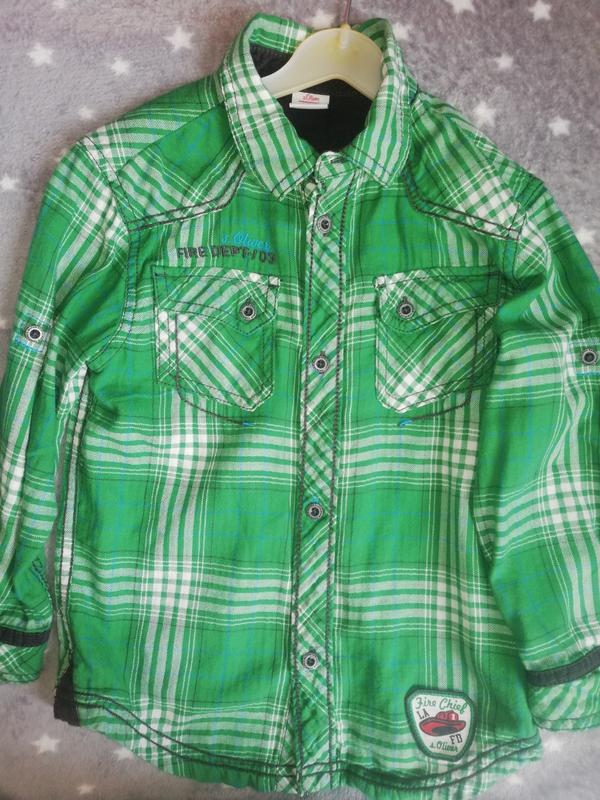 Сорочка на хлопчика у відмінному стані. Без плям і дефектів. Можна носити і з закатаным рукавом, щоб було видно обробку, можна і зазвичай. Довжина 47,5 см Довжина рукава 36 см ПОГ 36, 5 см Пересилка укрпоштою або новою.