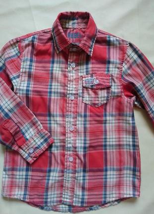 Рубашка с длинным рукавом фирмы Rebel в очень хорошем состоянии На возраст 4-5 лет и рост 110 см 65% полиэстр и 35 % котон Длинна 47 см В плечах 32 см Полуобхват груди 36 см Длинна рукава 36 см