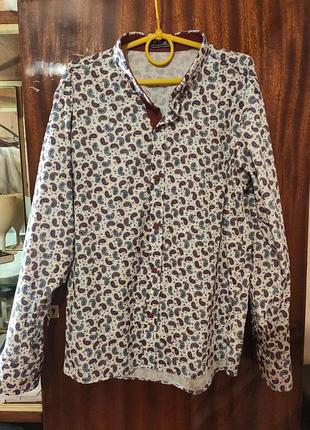 Ооооочень крутая и яркая. Рисунок называется пейсли или же "индийские огурцы". Одевали от силы раза 3. Пятен нет. Все отлично. На кнопках. рукав можно делать коротким. На самих рукавах 2 пуговки(на разную толщину запястья)есть ещё одна пуговка(видно на последнем фото). На бирке стоит размер 152. Длина сзади 59,5см. Длина впереди 54см. Плечи 39см. Длина рукава 49см. Ширина подмышками 43 см.
