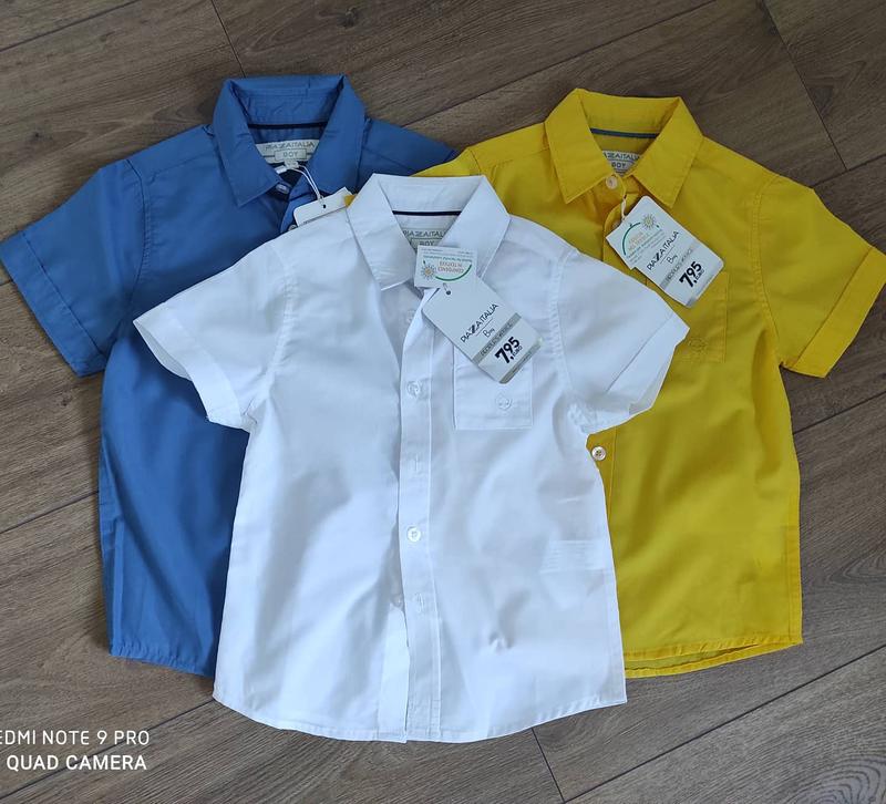 Сорочка для хлопчика 🤍💛💙від італійської фірми Piazza Italia. Класна якість 🔥, короткий рукав, приємна на дотик 🤗. 🤍-2/3, 4/5 💛-3/4 💙-3/4