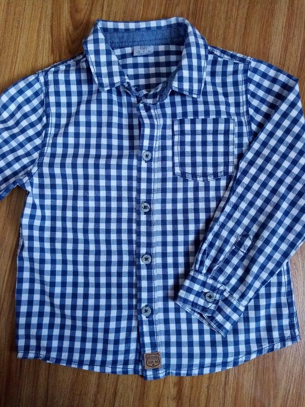 Рубашка в ідеальному стані на ріст 116 см. 5-6 років. Довжина по спинці - 42 см. ПОГ - 33 см. Довжина рукава від плеча - 38 см. Плече - 7 см.