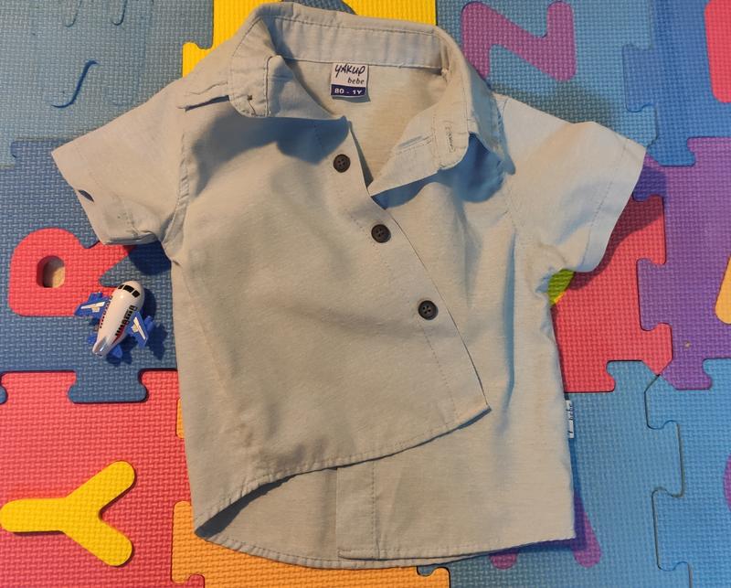 легенька сорочка на хлопчика віком 1 рік, зростом 80 см до коротких рукавів стан ідеальний. за потребою зроблю дод фото і заміри
