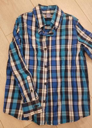 Фирменная рубашка с длинным рукавом на рост 116 отличного качества. Цвет насыщенный.