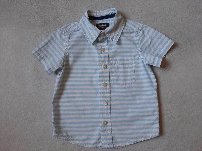 Состояние идеальное , без пятен и дефекта одевали пару раз . Рубашка плотная ,рукав короткий, застегивается на пуговицы. Цвет: бело-голубой , в полоску размер: 2T на 3-4 года 104\110 см состав: 100% хлопок Производитель: Oshkosh