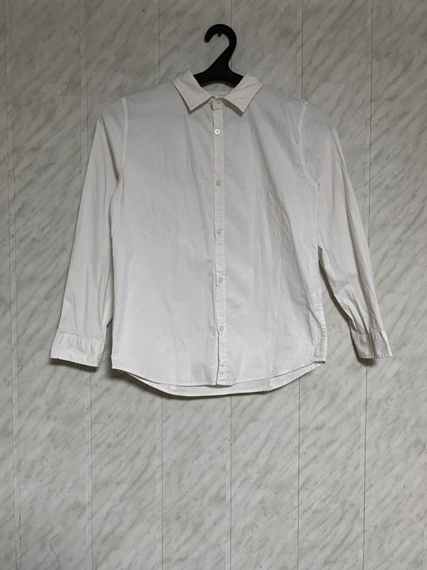 Белая рубашка для мальчика. Длина 58 см, длина рукава 51 см, плечи 35 см, ПОГ 43 см. На 11-12 лет.