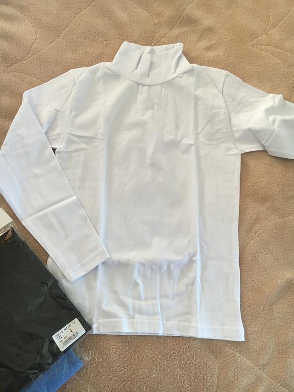 Коттон+лайкра,свободная горловинка,разные размеры,до 14 лет,цвета белый,черный и голубой.