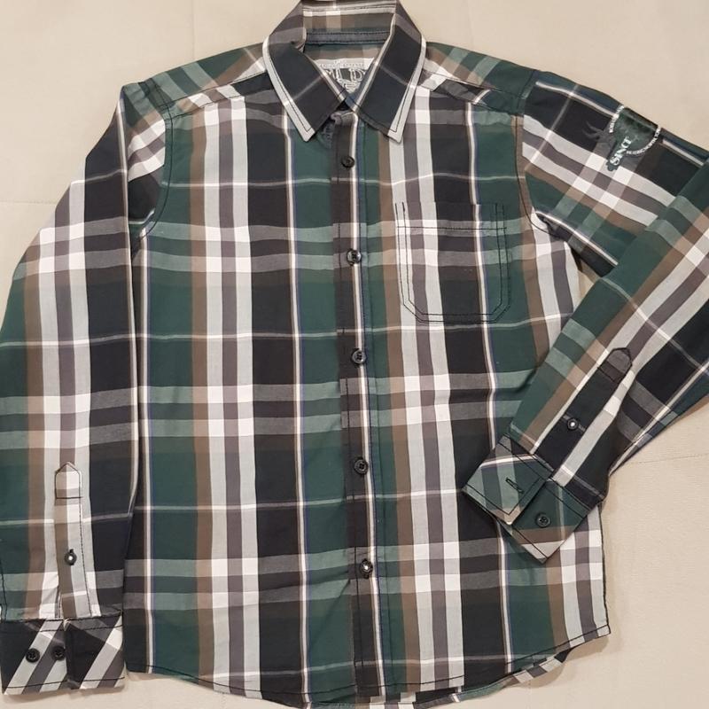 Чудова сорочка хлопця на зріст 152 див. В гарному стані, без недоліків. Купувала сіну в Німеччині. Продаю, бо замала. Висота по спині 62 см, ПОГ 42 см, довжина рукава по плечу 55 см ( по внутрішньому шву 45 см). Склад 100% cotton.