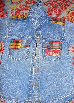 Є невеличке пятно на рукаві ( на фото). Сорочка на гудзиках. Ширина - 33 см, довжина - 40 см. На 3-4 роки.