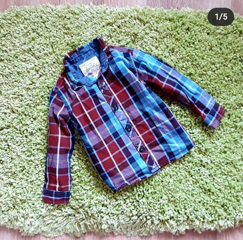 Очень красивая коттоновая рубашка фирмы George 2-3 года.На рост 98 см.Состояние идеальное, без малейших нюансов. Замеры: Длина от плеча до низа (по центру)- 39 Ширина под ручками 32 Рукав от плеча 31