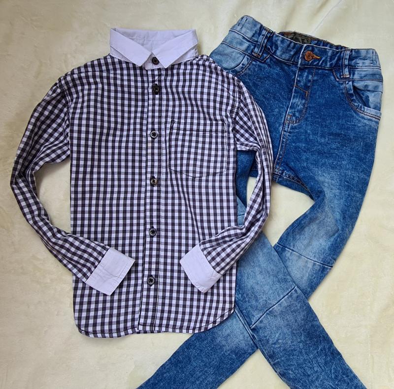 Модная рубашка в клетку с белым роликом и манжетами. Состояние идеальное. Смотриться шикарно. Замеры: длина - 44 ПОГ - 33 Рукав от воротника - 47