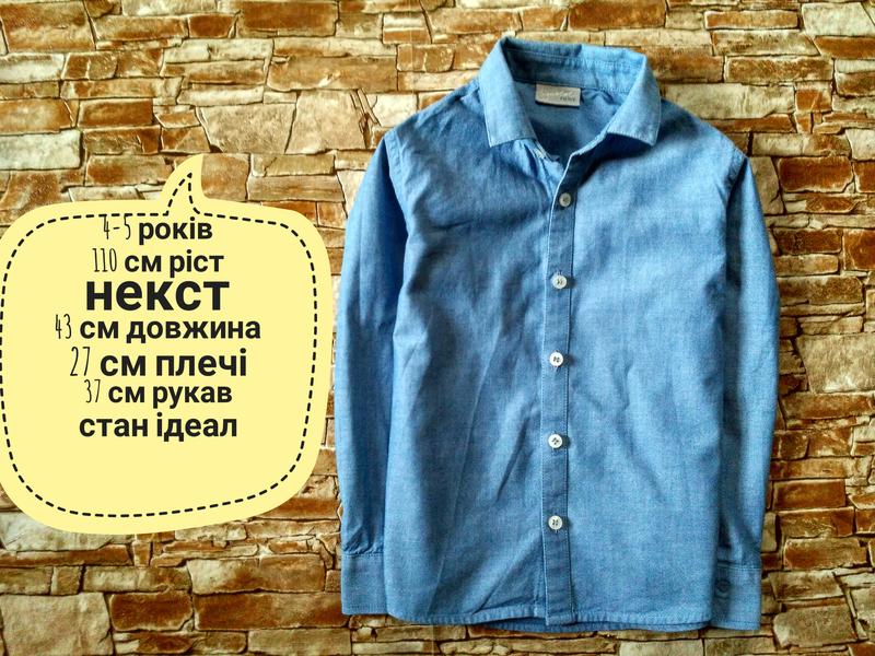 рубашка некст на 4-5 лет 110 см длина 43см плечи 27 см рукав 37 см состояние идеал