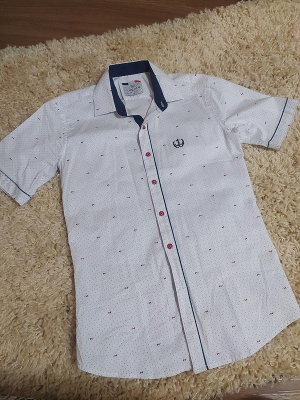 В наличии рубашка с коротким рукавом летняя. На мальчика 11-13 лет худенького телосложения. Ткань 100% котон. Состояние идеальное...Замеры: длина по спине 62см, ПОГ 41см, плечи 37см, длина рукава от плеча 20 см, ПОТ 39 см. Отправляю НП, УкрПочтой.